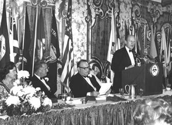 Washington, D.C. - Gus J. James, II, international president of the American Hellenic Educational Progressive Association (AHEPA), a leading association for the nation’s 1.2 million American citizens of Hellenic heritage, issued the following statement about the passing of the 38th President of the United States, Gerald Ford, on Tuesday, December 26, 2006: “We mourn the passing of former President Gerald R. Ford. He served our nation with dignity and integrity at a crucial time in our history. “We’re proud and honored that President Ford was a member of our organization. He demonstrated significant outreach to the Greek-American community and truly fulfilled the ideals and principles of what it means to be an Ahepan.” Photo Caption: Then-Minority Leader Gerald Ford addressing the 1970 AHEPA Congressional Banquet. Also seated, immediately to Ford’s right is Past AHEPA President Louis G. Manesiotis, followed by the man he would replace as Vice President, Spiro Agnew and Mrs. Betty Ford. |