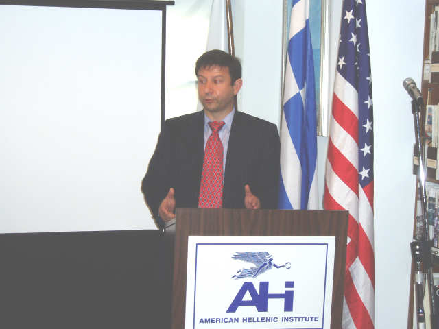 WASHINGTON, DC On June 22, 2005, AHI hosted a Business Noon Forum on "Housing and Economic Outlook" at the Hellenic House with Dr. Andreas Pericli, Chairman and CEO of Euclid Financial Group. Dr. Andrea Pericli gave a presentation on the indicators of buying a house, economic conditions and outlook on housing prices. He expressed how the U.S. economy continues to expand and housing markets will be strong. Dr Pericli stated, "Economic growth strengthens in 2005: as GDP growth should be 3.6% during the year. Unemployment slowly declines to 5.1% by the 4th quarter. Accommodative fiscal and monetary policy continues." He added, "Tame inflation will keep interest rates low: strong labor productivity growth. Fed funds will likely rise in 0.25% increments over several FOMC meetings if economic growth is sustained. In housing activity: Annualized House Prices grew at 11.8% annualized rate in the first quarter of 2005. Affordability Index in some local markets has fallen significantly." Dr. Pericli also said there are outlook risks such as "energy: high oil natural gas prices act like a tax on the economy, and deficits: there is strong overseas support of our US Treasury bonds from foreign investors." After showing various statistics on indicators, Dr. Pericli told buyers to beware of housing investment in certain markets. In housing markets such as California and New York he cautioned risk because home prices have outpaced income in certain states. To summarize, Dr. Pericli stated, "Economic growth strengthens in 2005: GDP growth should be near 3.6% on average for the year. Accommodative fiscal and monetary policy continues. Inflation, interest rates will remain low: 30-year, fixed mortgage rates to end year near 6.2%. Unemployment rate slowly declines to 5.1% by fourth quarter." He also stated, "Low interest rates, family income growth keep housing brisk in 2005: single-family starts and home sales set new records in 2004, and given the level of long-term rates are expected to be very strong in 2005 as well. Home value appreciation remains strong, 12.5% annual growth for first quarter of 2005 slowing to 6-8% in 2005-06." Dr. Pericli is responsible for all final investment and trading decisions, risk management and quantitative analysis at Euclid Financial Group. Prior to joining the Euclid Financial Group, he led the Prepayment Modeling team and the Structuring and Valuation teams as well as worked as Director of Financial Engineering at Freddie Mac for six years. Prior to that, Dr. Pericli was a Senior Research Analyst with Salomon Smith Barney. Dr. Pericli was a student of Professor Harry Markowitz, a Nobel Laureate in Economics and Professor Salih Neftci, a leader in derivatives and financial engineering. He is the author of eighteen journal articles and three book chapters in a variety of areas of finance. His publications include papers in the Journal of Investing, the Managerial Finance Journal, the Journal of Fixed Income, the Journal of Real Estate Finance and Economics, and the Journal of Future Markets. Dr. Pericli holds a Ph.D. in Econometrics and Financial Economics from the City University of New York. |