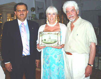Washington, DC In the month of June, American Hellenic Institute (AHI) members hosted two fundraising receptions in support of AHI. On June 18, 2005, AHI members Nicholas and Irene Kyriakopoulos graciously opened their home in Potomac, Maryland for a reception in support of the American Hellenic Institute. On June 25, 2005, AHI Chicago-area members and friends attended a similar reception. The event was hosted at the home of AHI Advisory Committee Member and long time supporter Ted Spyropoulos and his wife Erika. "I especially want to thank Nicholas and Irene Kyriakopoulos as well as Ted and Erika Spyropoulos for kindly hosting these events and for their longtime commitment and support to the American Hellenic Institute," said AHI Executive Director Nick Larigakis. Attached please find a photograph from the AHI Chicago-area fundraiser of AHI Executive Director Nick Larigakis with Ted and Erika Spyropoulos. |