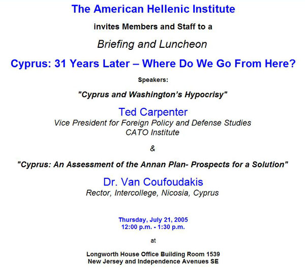 For more information about the American Hellenic Institute in Washington, D.C., contact Georgia Economou, Director of Public Relations for AHI, at (202) 785-8430 or at georgia@ahiworld.org, or visit the groups' website at http://www.ahiworld.org. AHI was founded in 1974 following Turkey's illegal invasion and occupation of 37.3% of Cyprus. It is a membership-based organization with members throughout the nation. AHI's core mission is to promote American values and the rule of law in U.S. foreign policy and to strengthen relations between the U.S. and Greece and Cyprus as being in the best interests of the United States. It conducts an active program with Congress in espousing and supporting legislation designed to promote American interests in Southeast Europe and the Eastern Mediterranean and is registered with the Congress under the Lobbying Act. The AHI Foundation is the first think-tank devoted exclusively to the study of the issues confronting the Greek American community. This organization sponsors conferences, seminars and publishes books and other materials on the issues. HCS maintains an extensive archives for AHI articles and press releases which visitors may browse under the American Hellenic Institute Releases section of the archives at http://www.helleniccomserve.com/contents.html. |