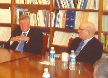 Washington, DC On October 6, 2005, the new Greek Ambassador to the U.S., Alexandros P. Mallias visited the American Hellenic Institute’s headquarters, the Hellenic House, for a meeting with AHI leadership and staff. AHI leadership had the opportunity to welcome Ambassador Mallias back to AHI as the new Greek Ambassador to the U.S. The over one-hour discussion centered on items of mutual interest regarding U.S.-Greece relations. The attendees included: AHI Advisory Board Members Kostas Alexakis, Jim Marketos, Nick Karambelas, AHI member Manny Rouvelas, AHI President Gene Rossides, AHI Executive Director Nick Larigakis and staff. Prior to his current position, Ambassador Mallias served from 2000 to 2005 as Director of the South Eastern Europe Department at the Ministry of Foreign Affairs in Athens. From 2002 to 2003, he was the Chairman of the Coordinating Committee for the Greek EU Presidency’s program for the Balkans, and between October 2002 and April 2003, he was also National Coordinator at the Stability Pact for Southeastern Europe. Ambassador Mallias received two ambassadorial promotions during this time. Ambassador Mallias served as Chief of Mission at the Greek Embassy in Albania in 1999. In 1995, he served as Head of Division for Bulgaria and Romania at the signing of the Interim Accord between Greece and the Former Yugoslav Republic of Macedonia, and between 1995 and 1999, he was appointed as the first Head of Mission at the Liaison Office of the Hellenic Republic in Skopje. In 1993, Mr. Mallias became Deputy Director of Diplomatic Cabinet of the Minister of Foreign Affairs Michael Papakonstantinou, during which time he was a member of the negotiating group headed by Mr. Papakonstantinou on the issue of the name of the Former Yugoslav Republic of Macedonia. In 1994, he was assigned as Head of the European Community Monitor Mission Regional Office in Sofia, which deals with Bulgaria and the Former Yugoslav Republic of Macedonia, during which time he visited Skopje frequently and maintained discrete contacts with FYROM’s leadership. From 1989 to 1993, Mr. Mallias was assigned to the Permanent Mission of Greece to the United Nations in New York, as First Counselor for Political Affairs. From July to November 1990, he served as Deputy Head of the Greek Delegation to the C.S.C.E. (Charter of Paris for a New Europe) in Vienna and Paris. From September 1988 to June 1989, Mr. Mallias was a member of the Delegation of Greece to the C.S.C.E. and C.F.E. (mandate talks) in Vienna. Promotions during this time included Minister Plenipotentiary First Class in 2001, Minister Plenipotentiary Second Class in 1997, First Counselor for Political affairs in 1989, and Second Counselor in 1988. From 1984 to 1986, Mr. Mallias served with the Middle East Department, the Inspector General, the West Europe Department, and the Cabinet of the Secretary-General at the MFA. From 1982 to 1984, he was posted at the Embassy of Greece in Tripoli, and was promoted to First Secretary. From 1978 to 1982, he served as Deputy to the Permanent Representative of Greece to the Council of Europe, where he was promoted to Second Secretary. Ambassador Mallias joined the Foreign Service in 1976. His first assignment from 1976 to 1978 was as Head of Unit for the Council of Europe (Attaché) in the Department for International Organizations, and was promoted to Third Secretary in 1978. Prior to joining the Foreign Service, Ambassador Mallias was a Press Officer at the Permanent Mission of Greece to the United Nations in Geneva from 1975 to 1976, and a Public Affairs Officer at the Information Center for the European Union in Athens from 1970 to 1972. Alexandros P. Mallias was born in 1949 in Athens. He is married to Mrs. Francoise-Anne Mallias and they have two daughters. |