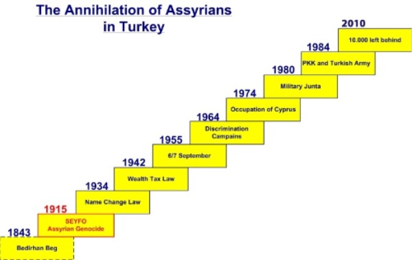 Turkey must confess and accept the Genocide it carried out against the Assyrians and the other ethnic minorities in 1915 and must apologize to them. Turkey must discontinue its policies of denial.