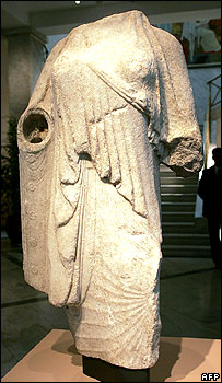 A 5th Century BC engraved funeral marker - a stele - and a marble votive relief dating from about 490 BC were returned in August. Disputed marbles As the wreath and statue of a woman's torso went on display in Athens, Greece's Prime Minister Kostas Karamanlis used the event as a platform to renew Greek calls for the Elgin (or Parthenon) Marbles to return to Athens. Standing between the two treasures, Mr Karamanlis said that the return of these artefacts would strengthen calls for the return of the Parthenon marbles. The marble frieze which once adorned the Parthenon Temple on top of Athens' Acropolis were acquired by Britain's Lord Elgin 200 years ago. The 2,500-year-old sculptures depicting religious and mythological scenes have been held at the British Museum since 1816, despite ongoing Greek efforts to have them repatriated. The British Museum insists the transaction was legal as he obtained permission to remove them from Greece's then rulers, the Ottoman Empire. Athens' corrosive smog and acid rain has also been cited as a reason not to return them. But a new climatically controlled Acropolis Museum, with an entire wing set aside for the Elgin treasures is due to be completed soon. Mr Karamanlis said that Greece had now fulfilled all the conditions for the Marbles' restitution. |