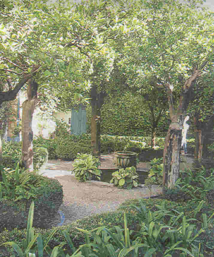 ![]() Foliage predominates -cypress, orange, jasmine and iris are typical |
