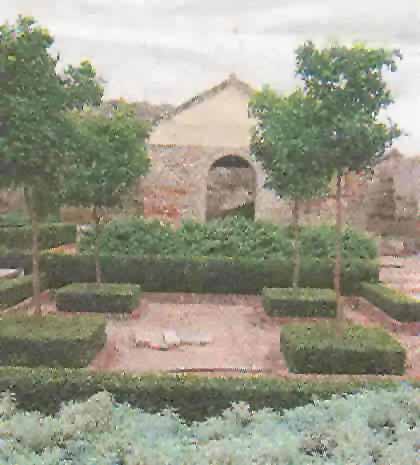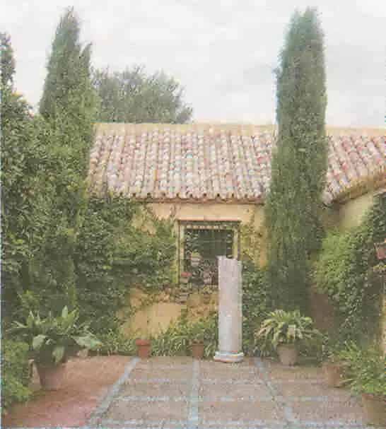 The patio garden was central to Moorish family life, and still is today to the Andalusians. Here a large proportion of family living took place, especially in the evenings, though guests were not usually entertained here - the emphasis was very much on family privacy. The meaning of patio here is something more than the modern sense of a paved outdoor area adjoining a house. The Spanish patio is a roofless inner courtyard - it was, and is, regarded as an outdoor room forming part of the total building concept. High walls of white stuccoed masonry cast a welcome shadow, against which green foliage gave the predominant colour, followed by the purple-blue of the iris (a colour often taken up in the tiles). Accessories such as benches, pots and fountains were placed carefully for maximum effect paths as well as steps were also faced with tiles, bricks, coloured earth or smooth pebbles laid in geometric fashion and ranging in colour from deep purple through to grey and white. From the street only an occasionally wrought iron gateway broke the unadorned facade from where a protected but inviting glimpse of a patio with its small pool, fountain and vegetation were revealed Many such quiet and cloistered patio gardens, shaded by orange and cypress trees may still be found in Andalusia nowadays. Orange trees feature widely - they go back to the earliest gardens - often planted in rows, sometimes. espaliered; in later and larger gardens the maze became popular and was formed of clipped box, cypress, myrtle, juniper or holly, preference being given to aromatic plants. Date palms, pomegranates and grapevines were also planted. Canary palms or pines were often placed in the centre of a courtyard to afford shade, the square or circular surface area around the trunk filled with groundcover such as violets. Nowadays Canary palms are still widely used as well as wild olives, loquat and pomegranate. Flowers were usually chosen for evening fragrance, so white blooms such as jasmine and lilies predominated. Today Cestrum parqui is added to this trio for heady night-time perfume. Myrtle, narcissus, roses, marjoram, carnations and poppies are among flowers recorded in the Arab Moorish gardens, and many are still used today. Acanthus, Qivia and Zimtedeischia all feature significantly - architectural plants suited to the formal style. |