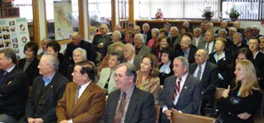 PFA President, Peter Evangelou, Ph.D., was also on hand and wished the capacity filled crowd Happy New Year and chronia pola kai eftihismena. Several current as well as past officers and members of PFA filled both meeting rooms that are utilized for social events. The first room was set up theater style where the Vasilopita was blessed and cut by Father Malamis and eventually a slice was given to everyone present. |