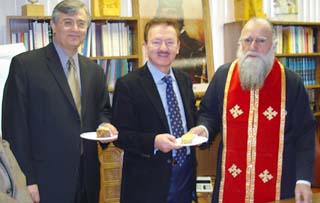 ![]() From Left to right, Peter Evangelou, PhD, President of PFA, Andreas Papantoniou /Governor of PFA Midwest District, Father Panagiotis Malamis. |