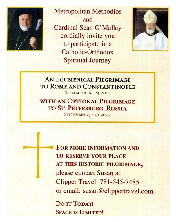 Metropolitan Methodios and Cardinal O'Malley to Lead Pilgrimage to Rome and Constantinople in September 2007