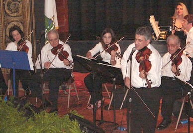 (HCS) Saturday, October 21, 2006, St. Athanasius Greek Orthodox Church held a concert and silent auction in the elegant performance center of Arlington, Robbins Memorial Town Hall. Filling the main floor of the auditorium and upper gallery seating, parishioners and guests from throughout New England listened enthusiastically to symphonic sounds of the 30-piece Hellenic and Near Eastern Musical Society Orchestra, and later bid on exquisite gift baskets developed with different themes. By any measure the event was a complete success. |