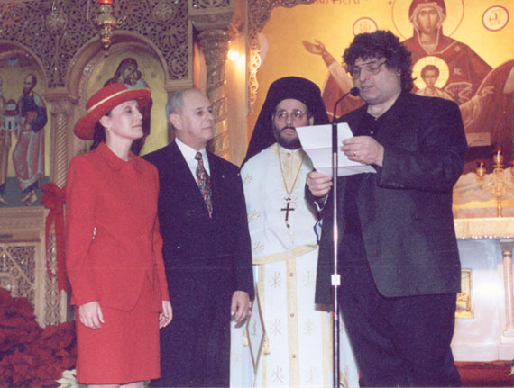 Haverhill, MA--Following Divine Liturgy on Sunday, December 16, 2001 at Holy Apostles Greek Orthodox Church in Haverhill, Massachusetts, Steven Karidoyanes presented the national Athenagoras Award to Christos and Mary Papoutsy on behalf of the New England Federation of Greek Orthodox Choirs. Since the award's inception, there have been only three other Boston Diocese recipients. Past president of the federation and the conductor of the Plymouth, Massachusetts Symphony Orchestra, Karidoyanes elaborated that the charter of the New England Federation of Greek Orthodox Choirs includes the directive to cultivate and support the rich legacy of Greek folk music. Christos and Mary Papoutsy have steadfastly supported these efforts in the Boston Diocese and beyond, according to him. The couple has worked tirelessly to perpetuate the love of Greek folk music through major performance and recording projects designed to foster enthusiasm for music of Hellenic lineage, with the proceeds from many of these activities benefiting The Greek Institute in Cambridge and many ecclesiastical communities throughout the United States and in Greece. Following the award presentation, the Ladies’ Philoptochos guild sponsored a reception in the church hall, with several hundred persons in attendance. Family and friends from throughout New England, especially Mr. Papoutsy’s hometown of Haverhill, joined the local community in congratulating the couple. Among those attending the presentation and reception were many members of the Hellenic and Near Eastern Musical Society Orchestra, a group formed two years ago by the Papoutsys. In 1998, the Papoutsys organized the Celebration of Greek Music in America Concert at Harvard University. Nearly 70 musicians, principally of Greek heritage, participated in the standing-room-only event. The performance culminated in a triple-CD set whose proceeds--and concert ticket sales--benefited The Greek Institute. Because of enormous demand, the Papoutsys have co-founded, along with noted violinist Fred Elias, the 25-piece Hellenic and Near Eastern Musical Society Orchestra. Unique in the United States, the varied instrumentation of this group includes a number of non-traditional and traditional folk instruments, permitting the group to offer a sophisticated and rich blend of traditional folk music and selections of contemporary Greek composers such as Hatzidakis, Theodorakis and Xarhakos. The orchestra has performed throughout New England for a number of charitable organizations and church communities. The group recently concluded a successful Florida tour, performing for the 75th anniversary celebration of St. Sophia Greek Orthodox Cathedral in Miami and at Florida Atlantic University for Paideia of Florida. The orchestra also has long-range plans to develop materials for music education. Donations of old sheet music and albums will be converted to digital formats for easy access and distribution over the Internet. Musicians also hope to offer free lessons in order to encourage young musicians to learn about and to perform Greek and Near Eastern music. For more information about the orchestra or its support society, call 603-431-9433. |