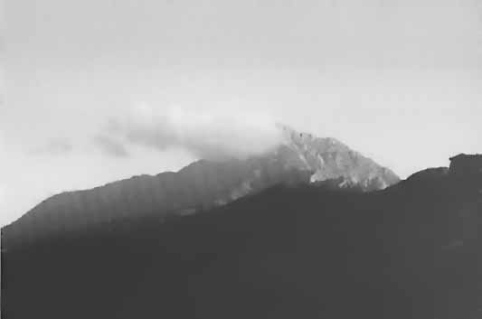 ![]() The summit of the Athos peninsula, Mount Athos, shrouded in clouds, seen from the Bourazeri community |