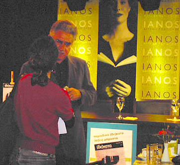 ![]() Dino Siotis, publisher of (De)kata speaks with journalists at Ianos Ctr. |