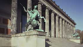 The Collection of Classical Antiquities Museum contains Greek and Roman works, not only architectural remains, sculptures and vases, inscriptions and mosaics, but also bronzes and jewellery. It displays holdings in two locations: the Pergamon Museum and the main floor of the Altes Museum, Museumsinsel Berlin-Mitte. With mor than 850,000 visitors annually, the Pergamon Museum ranks among the most popular buildings of the state museums. Its main attraction is the Pergamon Altar (2nd century BC). The frieze depicting the battle between the Gods and Giants is regarded as a masterpiece of Hellenistic art. The next room to the south contains the market Gate of Miletus, an outstanding example of Roman architecture. |