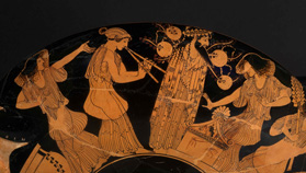 This is an exhibition of the Collection of Classical Antiquities in co-operation with the Institute for Religious Studies and the Interdisziplinäre Zentrum Alte Welt of the Freie Universität Berlin, the Collaborative Research Centre 644 of the German Research Foundation and the Theatre and Festival in Europe project. Dionysos, a god of contradictions, fascinated the Greeks and still has an allure for us even today. We connect him with wine and ecstasy, music and dance, but also with metamorphosis, disguise and theatre. |