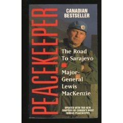 Note: Hardcover books also available. Published in 1993 by Douglas & McIntyre Ltd.: ISBN-10: 155054098X; ISBN-13: 978-1550540987; 345pp.; more info at http://www.amazon.com/Peacekeeper-Road-Sarajevo-Lewis-MacKenzie/dp/155054098X/ref=ed_oe_h