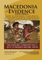 Title: Macedonia-Evidence (Color Version): Letter to President of the US, Barack Obama Supported by Well-Known Scholars of Graeco-Roman Antiquity with supporting doccumentation. Author: Pan-Macedonian Studies Center et al. Publisher: CreateSpace Date of Publication: May 2011 Language: English ISBN 10: 1453732349 ISBN 13: 978-1453732342 Price: US$30.00 Description: softcover, 204 pages Availability: Amazon.com and other major online vendors |