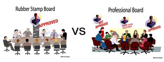 Owners and top management of corporations generally do not like to share control. Institutionalization of a business, however, means sharing control by establishing an effective, independent board of directors, not a "rubber-stamp" board. By sharing control of a business, there is a better opportunity for transparency, real oversight and accountability. "Rubber-stamp" boards notoriously contribute to corruption and scandals in corporations and represent the antithesis of an ideal board of directors. No business, small or large, public, private or non-profit, can be considered truly institutionalized until it has an independent board of directors comprised of men and women who are respected, competent, enthusiastic, diligent, and hard-working. And the ideal business climate for this board is one where disagreement is accepted as a virtue, not a vice.