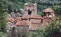 From Pantanassa it's fun to simply wander the grounds, exploring the ruins of homes and other buildings at will while heading in the general direction of the Bishop's Palace and the cathedral. One of the site's better preserved buildings, it's a good starting place as the cathedral's compound also houses the Archaeological Museum of Mystras. The collection icons, church relics, marble carvings. Sections of frescoes is a good introduction into Byzantine art which provided the bridge between antiquity and the Renaissance. Because the subject of all art created in Byzantium was predetermined by the focus on religious expression, artists' personal expression emerged through style, producing art which, in its sum, displayed an amazing depth and sophistication. Even a sample of such limited geographical range as the artists who came to Mytstras displays an outstanding variety of forms, with some pieces incorporating obvious Eastern or Islamic influences and others clearly inspired by Western aesthetic. The Cathedral of Agios Dimitrios is itself quite impressive. A triple-aisled basilica topped by a gallery and multiple cupolas, it is an eclectic mix of architectural styles that is typical of Mystras' churches. Different sections were added over a period spanning the 13th century, when some of the earliest wall paintings have been dated, to the 15th century when the gallery was added. The frescoes illustrate various religious themes, culminating with the Last Judgement in the narthex. A large marble slab laid with the double-headed eagle marks the spot where Byzantine's last emperor was crowned. The slope curves north, drawing visitors further into the Lower Town towards the Church of the Evangelistria (Our Lady of Annunciation) and the Church of Agii Theodorii the oldest church of Mystras. Evangelistria is built in the same domed, cross-in-square style as the Church of Agia Sophia and the Panagia Peribleptos, while Agii Theodorii stands out for its octagonal shape. The site is quite extensive and even though some buildings, such as the Palace of Despots, may be closed to the public because of restoration work, this somehow makes a visit to the site more manageable. It's also a perfect reason for planning more than one visit to Mystras each one differs depending on the season. Getting there Mystras, on the outskirts of Sparta, is about 230km from Athens via the Athens-Corinth-Kalamata highway. Bus service is available to Sparta (Athens KTEL, tel 210-512-4913), with local KTEL service to Mystras (timetables and fares at 27310-26441) Getting around The only way around Mystras is on foot. The site has two entrances, one about midway up the steep hill, near the Lower Town and one about midway up the steep hill, near the entrance to the Upper Town. The second entrance is also the nearest gate to the "kastro" or ruined castle. Allow at least four hours for the site. Wear comfortable walking shoes and take water, even in the winter. The site is open from 8am to 7pm through October 31, admission 5 euros (reductions apply for students, senior citizens etc) Mystras site and museum, tel 27310-83377 Where to stay Mystras can be visited on a day-trip from Athens, but can also make for a good weekend break. Accommodation is available in Neos Mystras, the town founded in the early 19th century at the foothills of the old Byzantine settlement, as well as in Sparta or, if you prefer the seaside, at Gytheio When to go The worst time to visit Mystras is in the summer because the heat can make the trek quite uncomfortable. Autumn and mild sunny days in winter are excellent for exploring the site; in spring, Mystras is awash with flowers and particularly lovely Bonus Sparta is in the heart of the Peloponnese's olive-producing region, so stock up on olive oil. Learn about traditional methods of olive cultivation and oil production at the Museum of the Olive and Greek Olive Oil (129 Amalias and Othonos St, Sparta, tel 27310-89315)