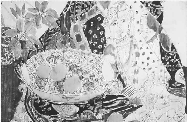 In addition to her devotion to Greek culture, Calliope has learned to love and appreciate her husband's homeland India where she has been vastly influenced by its mythological legacy and outlandishly displayed brilliant colors. She has exhibited in Greece and India, and most importantly, she has tried to bridge these worlds in her work. She does not consider her work to be purely Greek. What concerns her most is to remain motivated by allowing the influences of various fascinating civilizations to be reflected in her work; the temples of India, the multicolored saris, which are now interwoven in her paintings and murals depicting Indian and Greek gods and goddesses. She thinks that perhaps she ought to do something unusual, something different, and feels embarrassed at times for not achieving it yet. Artists often reach an impasse and introspectively search for what to do next. When we met recently to discuss her art work, Calliope told me, "In my statement, I mention how I have been influenced, most particularly by India. Being married to wonderful man from India and having visited India I developed a great kinship and appreciation for Indian art, but most emphatically I was greatly influenced by their use of color. India and Greece share a common cultural affinity; ever since Alexander the Great who had reached as far as India. The colors in India are amazing. "I was struck for instance, in Rothko, in his paintings; he blends colors together in his works. We went to major garment exhibit of cotton industries with my husband in India, and Sefi was interested in buying saris for the servants, not the expensive silk saris, these were cotton that you could have imagined were just out of Rothko's paintings. I felt sure he must have seen these in India or something similar. I picked up several not necessarily to wear but for the color schemes. I am also fond of Japanese art which is equally very powerful." |