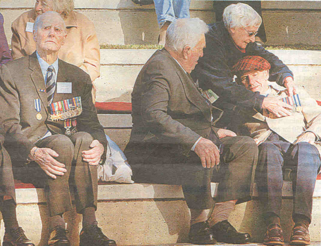 ![]() Australian World War II veteran Stan McDonald (R) has his medals adjusted by his wife Mary before receiving a medal from Greece's Prime Minister Costas Karamanlis for his participation in the Battle of Crete during a rememberance ceremony at the Australian Hellenic Memorial in Canberra on May 23 |
