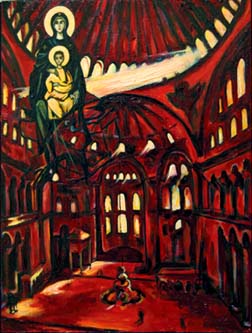 Sumptuous Greek fare and wine and an intimate recital by Cappella Romana, plus some surprises! Silent and live auction, featuring a newly commissioned painting "Agia Sophia: Panagia Protectress" (shown here) by Martha Irene Wallulis, and a week’s stay at a villa on the sea in Greece. $85 per person. Space is very limited. Reserve early. Eleni's Estiatorio Dinner, Intimate Music, plus Silent and Live Auction |