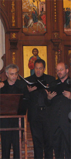 For this tour, Cappella Romana was comprised of Ioannis Arvanitis, John M. Boyer, John S. Boyer, David Krueger, Mark Powell, and Paul Sadilek, led by Alexander Lingas. The ensemble also had the opportunity to witness the hierarchical divine liturgy sung by the extraordinary Albanian choir at San Demetrio, who sang in Greek and Albanian. At the close of the liturgy, Cappella Romana was invited to sing the hymn for St. Demetrios, "Megan eurato."* Tour itinerary: Pontificio Istituto Orientale, Thu 4 May Piana degli Albanese (Cathedral of St. Demetrios), Sat 6 May Mezzojuso (St. Nicholas Church), Sun 7 May