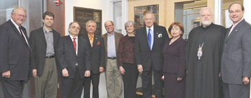 ![]() Celebrating the unveiling of the Geromanos plaque at Northeastern University (left to right): Neal Finnegan, Chairman Board of Trustees; Scott Curtis, Geromanos’ great-grandson; Honorable Constantinos Orphanides, Consul General of Greece; George Chryssis, Trustee and event host; Bradley Curtis, Geromanos’ grand-son; Judith Curtis MacMurray, Geromanos’ grand-daughter; George Behrakis, Vice Chair Emeritus and Northeastern Benefactor; Mrs. Margo Behrakis; His Eminence Metropolitan Methodios of Boston; and Dr. Joseph Aoun, President Northeastern University |