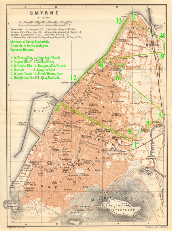 This is the second in a series of articles and items commemorating the 80th anniversary of the Smyrna holocaust in Asia Minor. In the 70s, Demetrios I. Archigenes compiled a series of eyewitness accounts of the tragedy, oral accounts which had been collected in prior decades. The result is a collection of stunningly vivid recollections of the terrible experiences of Greeks in Asia Minor during the "catastrophia" or holocaust. Published privately in Athens in 1973, "Martyries apo te Mikrasiatike katastrophe," or "Eyewitness Accounts of the Asia Minor Catastrophe," is not widely available in the U.S., nor have we located any English translation. In honor of the memory of those who have perished, we offer an English translation and adaptation of one of these eyewitness accounts by Mr. George Tsoubariotis. Comments in parentheses represent explanatory notes of the original editor. Notes in brackets are those of the translator, Mary Papoutsy, who assumes responsibility for any errors.