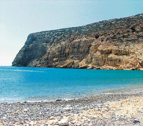 ![]() Dizzying hairpin bends leads to the stoney beach of Chelatros |