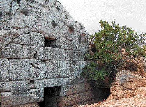 ![]() Hellenistic walls of rock shelter dating back to 425-375BC at Ellinokamara, the only archaeological site on the island |