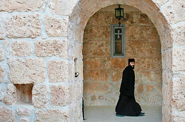 ![]() A Syriac Christian monk walks to attend a service at Mor Gabriel. The monastery is fighting over land it says it's had since the 4th century.