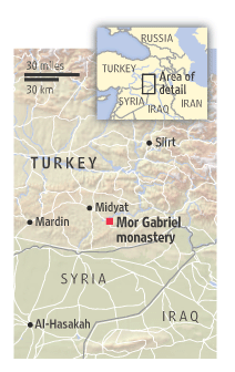 The dispute has spurred some Muslims in neighboring villages to launch complaints against the monastery. Mahmut Duz, a Muslim who lives near Mor Gabriel, lodged a protest last year to the state prosecutor in Midyat, a nearby town. Mr. Duz alleged that the bishop and his monks are "engaged in illegal religious and reactionary missionary activities." Mr. Duz urged Turkish authorities to remember Mehmed the Conqueror, a 15th-century Ottoman ruler who routed Christian forces and conquered the city now called Istanbul for Islam. He said Turkish officials should recall a vow by the Conqueror to " 'cut off the head of anybody who cuts down even a branch from my forest.' " Bishops and priests, Mr. Duz told the prosecutor, can keep their heads, but "you must stop the occupation and plunder" of Muslim land by the monastery. No one at the monastery has been prosecuted for the crimes alleged by Mr. Duz and other villagers. The monastery says these claims are ludicrous. It says it tutors 35 Syriac Christian school boys in Aramaic and religion but conducts no missionary activities. Syriac Christians take an even longer view than Mr. Duz. They deride local Muslims as newcomers, saying Mor Gabriel was built two centuries before Islam was founded. "Mohammed did not exist. The Ottoman Empire did not exist. Turkey did not exist," says Issa Garis, the monastery's archdeacon. A Long List of Raids Syriac Christians have indeed been living -- and often suffering -- here for a very long time. Mor Gabriel's history is a "long list of raids, wars, droughts, famines, plagues and persecutions," says British scholar Andrew Palmer. "Time and again, they've had to start again from nothing." In the eighth century, plague swept through the area and took the lives of many of Mor Gabriel's monks. Survivors dug up the body of Saint Gabriel, the monastery's seventh-century abbot, and propped him up in church to pray for help. The plague, according to tradition, passed. When disease later ravaged a Christian center to the north, Saint Gabriel's right hand was cut off and sent there to help. One of the fingers was then removed and dispatched to avert another crisis elsewhere. The finger is now missing. As Islam extended its reach, the monastery shut down repeatedly, but always reopened. It was attacked by Kurds, Turks and then Kurds again. In the 14th century, Mongol invaders seized the monastery and killed 40 monks and 400 other Christians hiding in a cave. Perhaps the biggest blow of all came in the modern era, when Turkey's slaughter of Christian Armenians during World War I led to massacres of Syriac Christians, too. The patriarch of the Syriac Orthodox Church later decamped to Syria. Ms. Tunc, the woman now living in Holland, grew up with stories of massacred relatives. Her father "told us never to trust Turks or Kurds," and ordered her to master Dutch ways "because we could never go back." Her family and many others left Turkey in the 1980s during a brutal conflict between Turkish soldiers and Kurdish guerrillas. Syriac Christians, viewed with suspicion by both sides, frequently got caught in the crossfire. The exodus drained towns and villages of Christians, including Midyat, the town where the court is reviewing the land dispute. Midyat used to be almost entirely Christian but now has just 120 non-Muslim families out of a population of 60,000. The town has seven churches, but just one preacher. Running a Tight Ship As Christians fled, Bishop Aktas took charge of Mor Gabriel. He'd earlier studied in New York but found the U.S. too permissive. "I didn't like America. It is not for monks like me," he says. By some accounts, he ran a very tight ship. Aydin Aslan, a student there from 1978 until 1983, says discipline was extremely strict, each day devoted to study and prayer. "It was like a prison," recalls Mr. Aslan, who emigrated to Belgium. Alarmed by a spate of thefts and determined to keep Muslim neighbors from encroaching, Bishop Aktas started building a high wall around his land. When Muslims from the village of Kartmin planted crops and grazed livestock near a well on monastic property, monks and school boys filled the well with stones to keep them away. Muslim resentment grew against the monastery, which was being bolstered thanks to funds from abroad. Following a drop-off in fighting between the Turkish military and Kurdish guerrillas after 2000, Syriac Christian ?migr?s seized on the relative calm. They poured money in to rebuild old churches, expand the monastery compound and build summer homes. A few decided to move back for good. Jacob Demir returned from Switzerland with his family to a new villa on the outskirts of Midyat. "They thought we would go to Europe and melt away," says Mr. Demir. Instead, he says, exile only made him more aware and assertive of his Syriac identity. (His older children are less enthusiastic: A daughter stayed behind in Europe and a son who came back to Turkey left when he discovered how low local salaries are.) The return to Turkey of relatively prosperous Christians helped the economy and provided jobs in construction. But it also needled some Muslims, especially when returnees began to claim abandoned property occupied by Muslims. Turmoil in neighboring Iraq added to the unease. After the 2003 U.S. invasion, hundreds of thousands of Syriac Christians in Iraq fled mainly to Syria and Jordan as security collapsed and Muslims turned on their neighbors. Iraq's most prominent Syriac Christian, Saddam Hussein's foreign minister Tariq Aziz, was arrested by the U.S. Acquitted this week in the first of three cases against him, he remains in jail on other charges relating to the massacre of Iraqi Kurds in the 1980s. As uncertainty mounted about the future of the Syriac church, officials in Midyat were ordered to survey all land in their area not yet officially registered. Surveyors, armed with old maps and aerial photographs, began fanning out through villages trying to work out who owned 