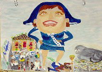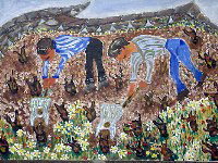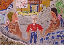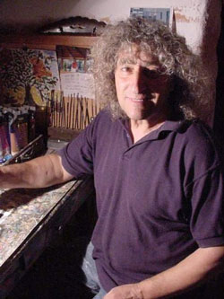 Kea is an island known for its artists. Because of its proximity to Athens it is the perfect weekend getaway and well-known artists like Fasianos have houses here. But one artist who is not known anywhere but on the island is Del, also known as Dellapizza. Born in Kea, one of a set of twins, Del came back to his ancestral island after living in Athens when he was in his twenties. His job as a handyman for the town of Ioulida gives him a perspective of life on the island that few others have and he uses his art to express his feeling about the island, the people as well as local, national and world events. |