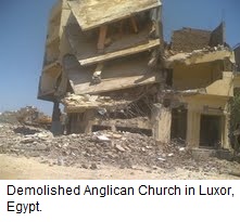 (AINA) -- An Anglican Church pastor and his wife were assaulted by Security agents in Luxor on March 18, 2010, in order to evacuate them by force from their home and demolish Church property. Out of the nearly 3000 sq. meters of buildings attached to the Church, only the 400 sq. meter prayer hall was left standing. Pastor Mahrous Karam of the Anglican Church in Luxor, 721 km from Cairo, said that the Church was still in negotiations with the Luxor authorities the day before regarding a replacement for the community center building which lies within the Church's compound, and was told the authorities were still considering their options. Early next morning, a 500-man force of Central Security and State Security blocked all roads leading to the Church compound, forced their way in and broke into the pastor's residence, dragging the family out by force. |