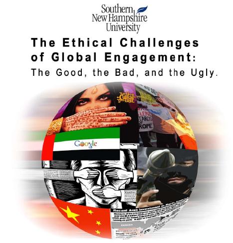 Each of the panelist answered the questions in a creative, effective and informative manner. There were many questions and comments from the audience of faculty, students, and the business community. Questions from the audience were posed by Dr. William Naumes of UNH Whittenmore School of Business and Mr. Richard Kimball, Corporate Executive, followed by a spirited and interesting discussion took place between a number of SNHU's international students and the panelist dealing with globalization, the good, the bad and the ugly. The event clearly raised important ethical issues; such as the tension between cultures regarding democracy and the right to free speech; issues of national security versus a commitment to free trade; the challenge of agreeing to censorship and the inhibition of human rights in foreign countries, and the power of the bottom line to drive business employment and deployment decisions sometimes to the severe detriment of local communities in the Unites States. The feed back from the audience was positive in that they appreciated the style in which multiple perspectives were presented and discussed on all of the subjects. (Posting Date 14 April 2006) |