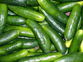 most valuable in this sense - unfortunate, as many people feel safer peeling the skin off when buying from non-organic sources. They also contain vitamins E, and some C, B and A. Besides their own nutritional value, cucumbers are said to enhance the nutritional value of other foods with which they are eaten. Cucumbers are also good natural diuretics - useful for flushing out the kidneys and bladder and in helping to remedy cystitis. The seeds have long been used to dissolve gravel in the urinary tract. For the same reasons cucumbers are said to be helpful for conditions associated with accumulation of uric acid - arthritis, gout, and rheumatism. And eating a couple of cucumbers is reputed to be a most dependable laxative. A great cooling addition to any salad, cucumber is one of the main ingredients of Greek favourite, tsatsiki, along with yoghurt and garlic. |
