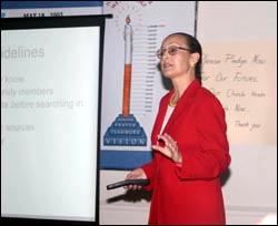 Led by the founder of Hellenic Historical and Genealogical Association, Mary Papoutsy, the group covered topics essential for family research. Participants learned about completing family trees, guidelines for conducting research, techniques for transliteration, and about the unique challenges of investigations into Greek ancestry. Hellenic cultural and linguistic differences present unique situations for researchers, making traditional genealogical practices difficult. Using a PowerPoint presentation and reproductions of actual records, Papoutsy recommended alternate steps, beginning with American-based records and databases. Researchers, Papoutsy stressed, need the full, original Greek surname and village name in order to continue investigations abroad. Following the workshop, there was a brief question-and-answer period and reception hosted by the Forever 49 Club. Members of the group presented Mrs. Papoutsy with a gifta Christmas ornament of Sts. Constantine and Helen churchat the conclusion of the program.