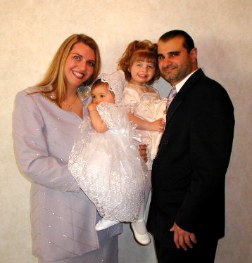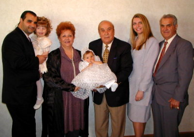 On April 29, 2001 at 2:00 p.m., godparents Gail M. Adamopoulos and Leonard P. Geomelos baptized Janet Rose, the daughter of Michael and Catherine Geomelos, at St. Vasilios Greek Orthodox Church in Peabody, Massachusetts. She is the grandchild of Danny and Janet Katsarakes and Peter and Tessie Geomelos, and the great-granddaughter of Michael Orgettas, all of Peabody. Father Andrew Demotses, parish priest of St. Vasilios, officiated.