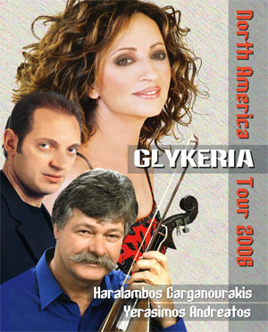 She has sung in concerts in Greece and abroad (Europe, USA, Canada, Australia, New Zealand, Cyprus, Israel). Due to the successful concerts she gave in Israel she was proclaimed most popular foreign singer; the Mayor of Jerusalem awarded her the golden key of the city (1994) and the then President Y. Rabin invited her to the Presidential Palace to meet her (1995). Three albums were released in Israel at the same time, all of them gold in a very short time: “Glykeria golden-hits”, “Far away”, “Glykeria 14 classics”, and her first album in France: “Golden hits The voice of Greece”.