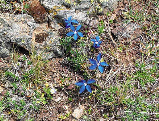 ![]() Having failed to make it to Drakolimni, we sought consolation in a wondrous view of blue alpine flowers |