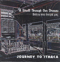 This CD is the first produced by the talented quintet, Journey to Ithaca. It represents a collection of pieces about people, places and events encountered by the group. Using original compositions, the group has bridged the gap musically between traditional and contemporary Greek music, drawing together different music styles to correspond analogously to the musicians and experiences. A Stroll Through Our Dreams richly connects musical styles of the past with poetic, and melodic storytelling. The twelve songs reviewed on this marvelous recording were I Maria tou Dekemvri (Maria in December), Apologismos (Self-Reflection), Animera tou Ai-Yianni (St. John's Day), Thalassa Kyra-Kali (Sea, Gentle Mistress), Mikre, Glyke mou Baglama (My Sweet, Petite Baglama), To Parapono tou Kapetan-Kiriakou (Captain Kiriako's Heartbreak), Odos Evzonon (Evzonon Street), Onirevomoun tis Proalles (Yesterday's Dream), Poli Dihos Synora (City With No Borders), Tryferes Stigmes (Tender Moments), Theresia (Instrumental), Tou Iordani (To Our Friend, Jordan). Fans of Journey to Ithaca will remember that some of these numbers were performed at the Celebration of Greek Music in American concert Harvard in 1998. The sound of this recent CD was produced according to the highest level of standard. When combined with an attractive jewel-case jacket bearing a number of photographs of the musicians, and a handsome enclosure listing the lyrics to the songs, A Stroll Through Our Dreams scores a big hit. Kudos to lyricists and composers Mike Emanouilidis and Thanasis Haberis and to mastering expert Paul Sampsonis for arranging and producing this important recording. All of the musicians of Journey to Ithaca deserve great praise: Makis Emanouilidis (vocals, guitar, and baglama), Thanasis Haberis (vocals and percussion), Adam Padazis (accordion), Paul Sampsonis (bass, guitars, and guitar synthesizer), and Peter Vorvis (bouzouki). As music critics would say, Real tight! Writer assigns a five star rating to A Stroll Through Our Dreams by Journey to Ithaca. To purchase this CD, telephone or fax 781-444-2951. Visit the website: www.journeytoithaca.com