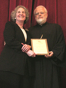 ![]() Metropolitan Methodios of Boston with Rev. Dr. Diane Kessler during the award ceremony |