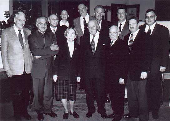 ![]() Dr. Bernard Knox to Deliver Rouman Classical Lecture at UNH ![]() Members of the Advisory Board and distinguished guests honor Dr. Bernard Knox at dinner: (Front row, left to right) Dr. Douglas Marshall, Mr. Dino Siotis, Mrs. Knox, Dr. Bernard Knox, Dr. John Rounan, Dr. Stephen Brunet, Dr. Richard Clairmont; (Back row, left to right) Mr. Christos Papoutsy, Mrs. Mary Papoutsy, Dr. Richard Desrosiers, Dr. John T. Kirkpatrick, Dr. Paul Properzio |