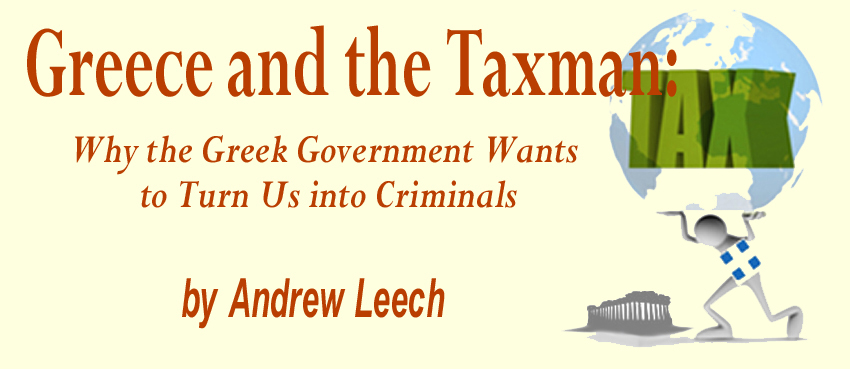 The dilemma was how to cope, as it was basically a return to the old system where the taxman doubled whatever you declared. However, now, with honest receipting being implemented, there seemed no way you could avoid paying twice on your declared earnings. There was absolutely no way of returning to the old system of declaring half your earnings. The state was pushing you into thinking of tax evasion simply to survive! Then I found that if you declared profits at a certain level for language schools it was 32% (now 30%) of the gross income collected in fees ( a very high figure for schools) taxman would accept that as an honest declaration. So, that is what many of us did. Sometimes I had to throw out deductible invoices to achieve the target, but it was preferable to pay some extra tax on imaginary, inflated earnings than face the tax authority asking for even more at a later date. However, I have now received (along with the thousands of others who either have, or have ever had, official receipt books) another slip of paper asking me to pay an amount exceeding all the tax I have been assessed for the past decade. Le plus ca change, le plus c’est la meme chose (the more it changes, the more it remains the same), as the French say. Alas, it is sometimes very difficult being honest and allowed to pay just your fair share of tax in Greece as its tax authorities don’t seem to want to let you do that. Recently, I have seen horrendous tax bills sent; not only to active companies, but also small-timers like a part-time photographer who had earned only €9,000 over a 2 year period and a woman who had closed her company, but was assessed for later earnings that had never taken place! Salaried people don’t face this problem; no government disputes what their employers declare they pay them. But all the self-employed and small companies (who can’t afford highly paid, whiz-kid accountants and lawyers) are constantly treated as tax-evaders from the moment they start business and, unless they can find a way of successfully presenting their accounts, they are going to be assessed at tax percentages higher than those applied to companies or individuals earnings hundreds of times more. |