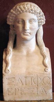 The word "lesbian," meaning a female homosexual, comes from the work of Sappho (image, right), a poetess born on the island in the Seventh Century BC. While agenda driven analysis of Sappho's poems has classified her as a homosexual, this is far from clear from the texts, and there is debate about whether Sappho was a "lesbian" in the sexual sense at all. Indeed, one legend has Sappho meeting her end by jumping off a cliff in despair over unrequited love for Phaon, a man! (Needless to say, the Phaon legend is discounted by "lesbian" scholars and their allies, on ideological grounds. It doesn't fit. Similarly, homosexuality was viewed as a behavior, never as a lifestyle, not only in the Classical world, but universally until only recently. The American Psychological Association declassified it as a mental disorder, only after intense pressure from homosexual activists, in 1973, after a vote.) Looseness with the facts is a well-known and often hilarious hallmark of both the homosexual agenda and with political correctness in general. Phony words with meaningless etymolgies are presented, like "homophobia," intended to put a pseudo-diagnostic gloss on a point of view which is targeted for suppression. Perhaps the best known "real Lesbian" is Michael Chiklis, star of The Commish and The Shield, whose father's family hails from the island. Other Lesbians, less famous in this post literate age, are Theophrastus, the successor of Aristotle, Terpander, Christopher of Mytilene and Saint Theoctiste. |