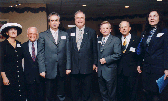 ![]() (left to right, seated) Prof. Eleanor Dunfey-Freiburger, first appointee to the Christos and Mary Papoutsy Endowed Chair in Business Ethics at Southern New Hampshire University; Dr. John C. Rouman, co-chair of the John C. Rouman Classical Lecture Series at the University of New Hampshire; Mrs. Mary Papoutsy; (standing) Dr. Richard Gustafson, president of Southern New Hampshire University; Mr. Ioannis Magriotis, Deputy Minister of Foreign Affairs of the Hellenic Republic; Mr. Christos Papoutsy; Mr. Richard Kimball, member of the Advisory Board for the Papoutsy Endowed Chair in Business Ethics; Dr. C. Douglas Marshall; member of the Advisory Board of the John C. Rouman Classical Lecture Series at the University of New Hampshire; Dr. Kenneth Goodpaster, keynote speaker; Mr. George P. Chatzimichelakis, Consul General of Greece in Boston |