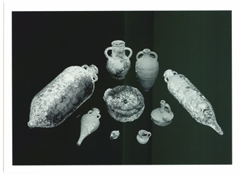 23. McCann and Freed 1994, pp.2-58; Ballard, Archbold, McCann 1990. 24. McCann and Freed 1994, color fig. 10. 25. McCann and Freed 1994, MJ98-8, p. 39, fig.32,color fig.13. 26. McCann and Freed 1994, MJ89-14, pp. 43-44, figs. 36a, 36b, and 37. For analysis of the pine tar see, ibid., pp. 109-121 by C. W. Beck, D. R. Stewart and E. C. Stout. 27. McCann and Freed 1994, MJ89-43, p. 17, 18 and figs. 18a and 18b. 28. McCann and Freed 1994, MJ89-36, p. 45, fig. 38a and 38b. I am grateful to D.M. Bailey for suggesting this dating range to me, although the type may occur earlier and last later. 29. See McCann and Freed 1994, pp. 22-32. These large amphoras vary in height from 103 m to 104 m and could hold up to 20 gallons of liquid, the limit that a stevedore could carry. While the type is usually associated with olive oil, Freed argues that the four with pitched interiors must have contained fish products since pitch is not associated with oil jars. 30. McCann and Freed 1994, pp.35-37, MJ89-7, MJ89-10. 31. McCann and Freed 1994, pp. 33-34, MJ89-11, MJ89-19. 32. McCann and Freed 1994,MJ89-16, p.41, fig.34,color fig. 15. 33. McCann and Freed 1994, MJ89-40, p. 19, figs.20-22. 34. McCann and Freed 1994, MJ89-37, p. 11, fig. 9. 35. McCann and Freed 1994, MJ89-39, fig.10. color fig. 9. 36. McCann and Freed 1994, MJ89-13, MJ89-21, MJ89-38, figs. 12-15. 37. SK97.030, publication forthcoming. |