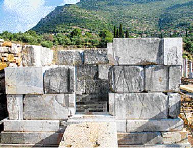 is crowned by the Monastery of Voulkano, a 16th-century convent which was built over the strategically placed sanctuary of Zeus Ithomatas, Messina's patron god. Nestled between the mountain and the ancient site is the well-watered village of Mavromatti, the base since 1987 of an archaeological team that, under the auspices of the Archaeological Society of Athens and the supervision of Crete University professor Petros Themelis, has been conducting excavation and restoration works on the site. In Pausanias' footsteps "Pausanias is our main source," Themelis told the Athens News. The traveller and geographer who set foot in Messene in the middle of the 2nd century AD is known for his precise and detailed descriptions of the ancient cities of the Peloponnese, Attica and Boeotia. Nevertheless, there are a few inconsistencies which Themelis believes can be put down to the traveller's processing of his draft notes into a fully-fledged account of his impressions following the end of his wanderings. "Until recently we have been led to believe that the sanctuary of Messene [one of the principal deities of the city together with Zeus Ithomatas] was in the wider area of Asklepieion," said Themelis, "but now we have identified it in the Agora." At the moment, restoration work is a priority because of the crew's commitments with the Third Community Support Framework which involve the site's delivery to the public by the end of 2007, complete with suggested routes, a ticket kiosk, snack bar and toilet facilities. Nevertheless, excavations continue in the Agora. Digs at the Agora's northern side that started four years ago have uncovered a colossal portico. The stoa is 186m long, its northeastern corner surviving in pristine condition. Approximately four times the size of the Asklepieion, the Agora, Themelis' team believes, is Messene's future and is expected to play a vital role towards the site's unification. "The Agora is vast. It is the only part that hasn't been excavated thoroughly and is open to future generations of archaeologists," said Themelis. The team came across new cults - such as the one of Dionysus - which are not even mentioned in Pausanias' writings. Among the Hellenistic sculptures that adorned the mainly Roman theatre was the pedestal of a now lost bronze statue whose inscription revealed that it was commissioned by a Dionysia contest organiser. "We have been searching for a Dionysus sanctuary in the vicinity of the theatre as we have indications that the theatre often hosted performances in the god's honour," said Themelis. As opposed to the lesser known finds, Messene's monumental Arcadian gate, which has been repeatedly depicted on engravings, is one of the city's landmarks, providing an outstanding example of 4th century BC military architecture. Consisting of an outer and an inner gate - the former one being protected on either side by two square-shaped towers - the city's north gate, which connected Messene with Arcadia and Megalopolis was recently given the Europa Nostra award for outstanding conservation work. As part of a restoration project set to be completed in the next two years, a German team of helpers is currently surveying Messene's 9.5km-long fortifications. |