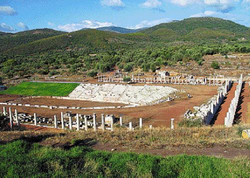 ![]() Panoramic view of the Stadium and the Gymnasium where Messene's youth used to train and be educated |