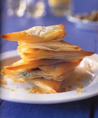 Little spinach-cheese triangles are probably among the most familiar Greek party foods. This recipe is enriched with several kinds of cheese and fresh herbs. MAKES ABOUT 36 TRIANGLES 4 tablespoons extra-virgin olive oil, plus more for brushing pastry 2 cups chopped, blanched, drained spinach (about 6 cups fresh, or 1 pound frozen and defrosted) ½ cup chopped fresh mint ½ cup chopped fresh flat-leaf parsley Salt and freshly ground black pepper to taste 1/3 cup ouzo 1 cup (about 4 ounces) crumbled feta 1 cup (about 4 ounces) crumbled Greek manouri cheese or ricotta salata ½ cup (about 4 ounces) fresh anthotyro, whole-milk ricotta, or farmer’s cheese 1 large egg, slightly beaten 1 pound (about 18 sheets) commercial phyllo, defrosted and at room temperature Olive or other vegetable oil for frying, as needed DIANE KOCHILAS is the author of The Glorious Foods of Greece, which won the prestigious Jane Grigson Award for Excellence in Scholarship by the IACP in 2001. She has authored two other books on Greek cuisine, The Greek Vegetarian and The Food and Wine of Greece. She is chef-owner of Villa Thanassi, a real country restaurant with a real country garden, which she runs every summer together with her husband, Vassilis Stenos, on their ancestral island, Ikaria. On Ikaria, she also operates The Glorious Greek Kitchen Cooking School and organizes culinary trips and walking tours in Athens and in other parts of the country. Diane was born and raised in New York City. She moved to Greece with her husband in 1992 and now divides her time between New York, Ikaria, and Athens, where she is the city’s best-known restaurant critic and food journalist. Her weekly columns appear in Ta Nea, the country’s largest newspaper. Her work appears often in American magazines and newspapers. “With this massive and masterful collection, Kochilas brings Greek cooking front and center in American kitchens. . . Kochilas writes lovingly and insightfully about her adopted country, profiling the many Greeks (mostly women) who generously shared recipes with her, and displays a deep grasp of history.” |